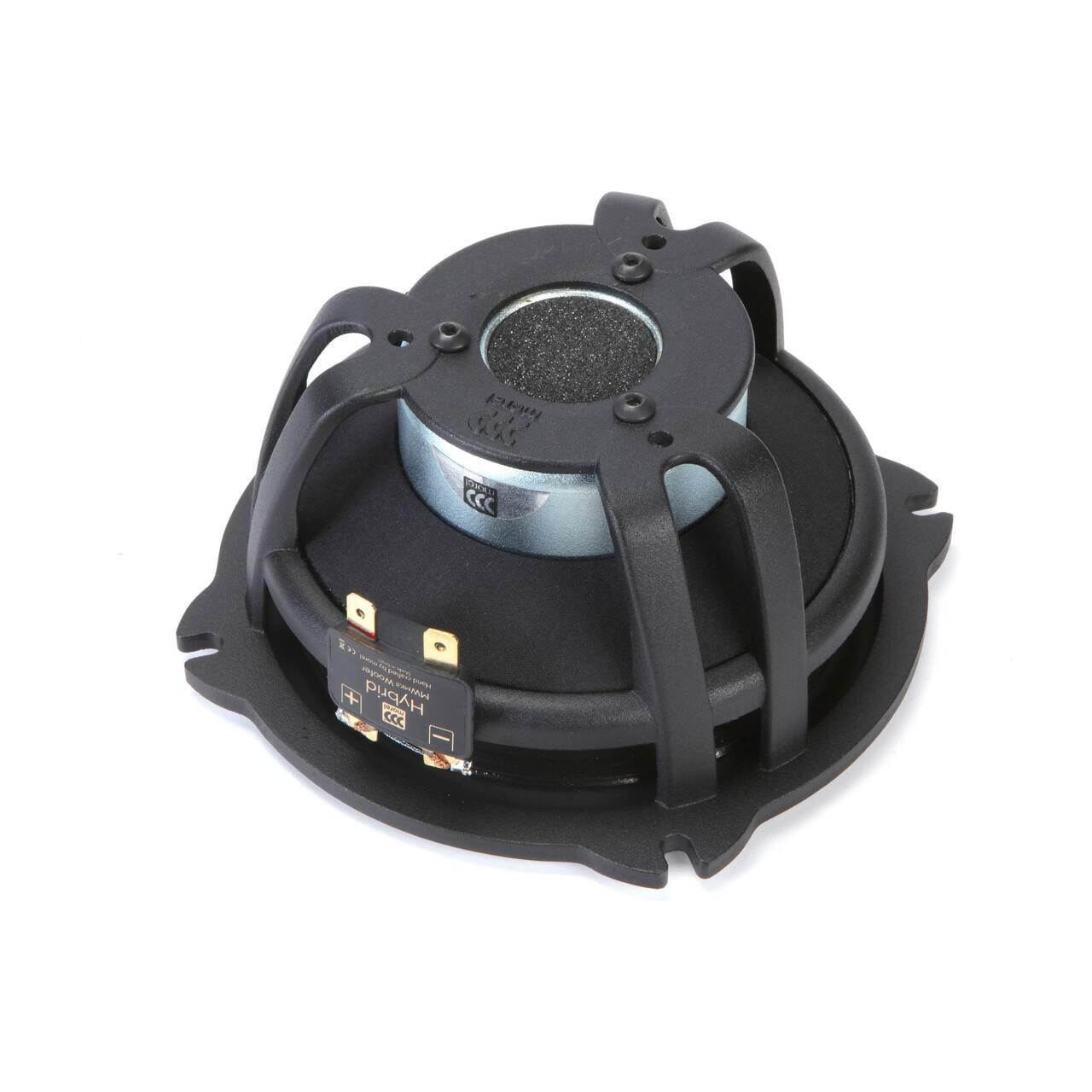 Sistemul de antrenare hibrid folosește un magnet de ferită împreună cu un magnet de neodim foarte puternic. În combinație, ele creează un sistem compact și ușor, care este de până la patru ori mai puternic decât structurile convenționale de aceeași dimensiune. Cu un sistem hibrid, mai multă putere amplificată este convertită în energie sonoră pentru performanțe impecabile, chiar și într-un spatiu mic.