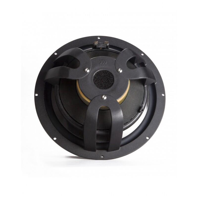 - Sistemul de antrenare dual Morel generează mai multă energie magnetică decât un singur magnet de dimensiuni similare, crescând eficiența și intervalul dinamic. Poziția magnetului secundar montat deasupra plăcii superioare a motorului este cheia pentru controlul fluxului magnetic difuz, creând un câmp magnetic mai concentrat, contribuind în același timp la caracteristica „ecranată” a difuzoarelor.