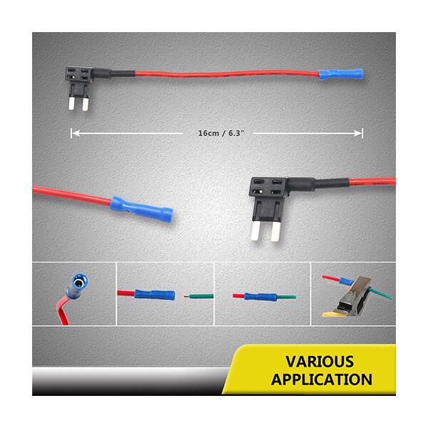 - Se utilizează la cablarea sau adăugarea unui radio de 12V, a unei benzi luminoase LED, a unei camere de bord, a unui GPS, a unei camere video pentru marșarier sau a oricărui alt dispozitiv electronic mic care necesită cablare directă în cutia de siguranțe.