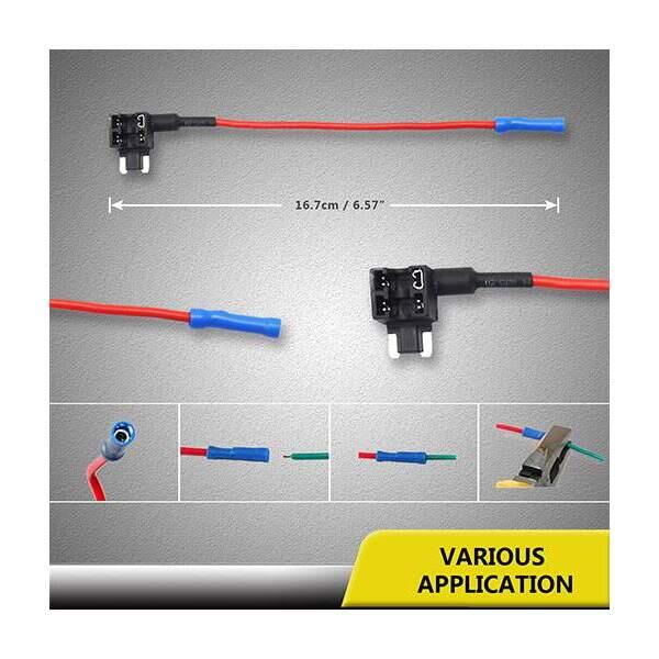 - Se poate utiliza la cablarea sau adăugarea unui radio de 12V, a unei benzi luminoase LED, a unei camere de bord, a unui GPS, a unei camere video pentru marșarier sau a oricărui alt dispozitiv electronic mic care necesită cablare directă în cutia de siguranțe.