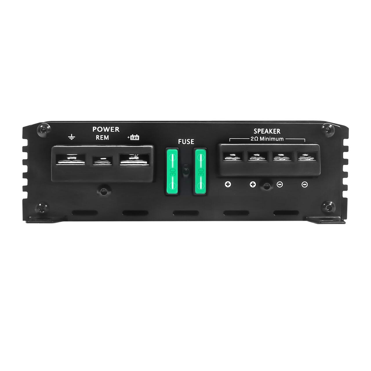Amplificator Mono Clasa D, putere maximă de 1200W, rezistență la 2/4 ohmi, sursă de alimentare MOSFET, telecomandă control bas inclusa