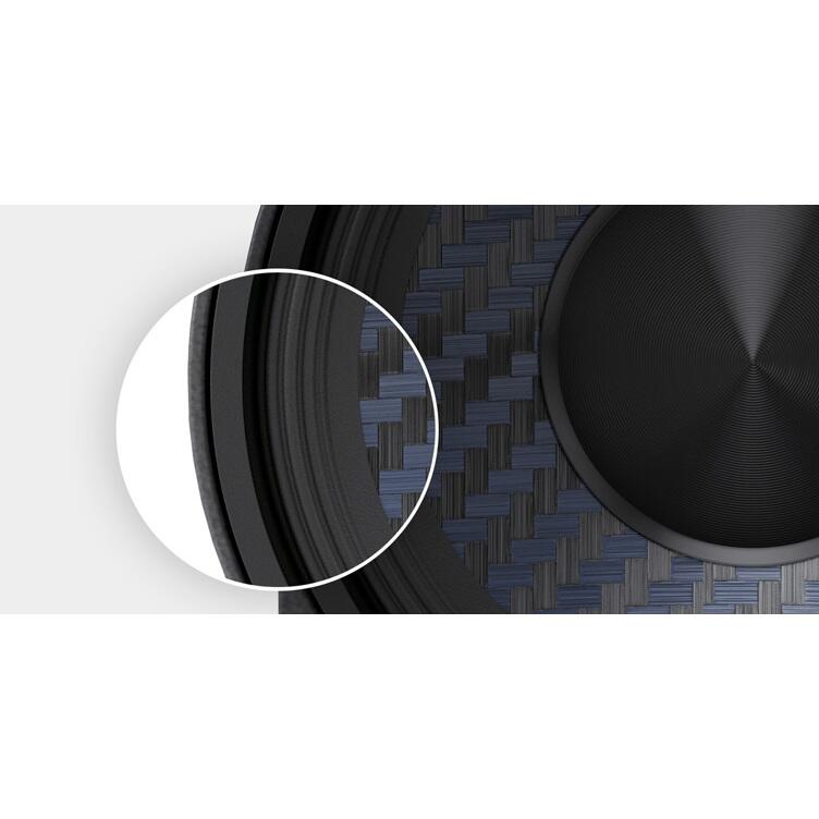 - Diafragma woofer-ului hibrid din fibră de carbon țesută, oferă o rigiditate rezistentă și este ușoară, ceea ce asigură o viteză precisă a conului și limitează distorsiunea pentru a obține un răspuns natural și extrem de revelator la frecvențele medii, precum și o extensie puternică a basului. Aspectul acestui difuzor este incredibil, cu performanțe pe măsură.