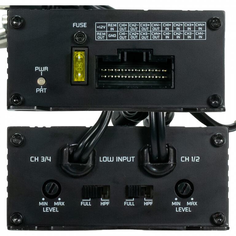 Amplificator ISO ultra-compact cu 4 canale pentru instalări OEM, tip plug&play ( mufa ISO inclusa ), Seria Radioactive