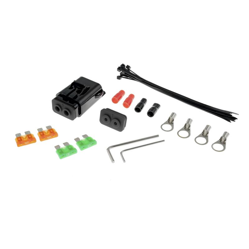 - Suportul de siguranțe poate fi echipat fie cu o singură siguranță, fie cu două siguranțe de aceeași valoare conectate în paralel. În acest caz, valoarea totală a siguranței este dublată. De exemplu, cu două siguranțe de 20 A introduse, valoarea totală a siguranței este de 40 A.